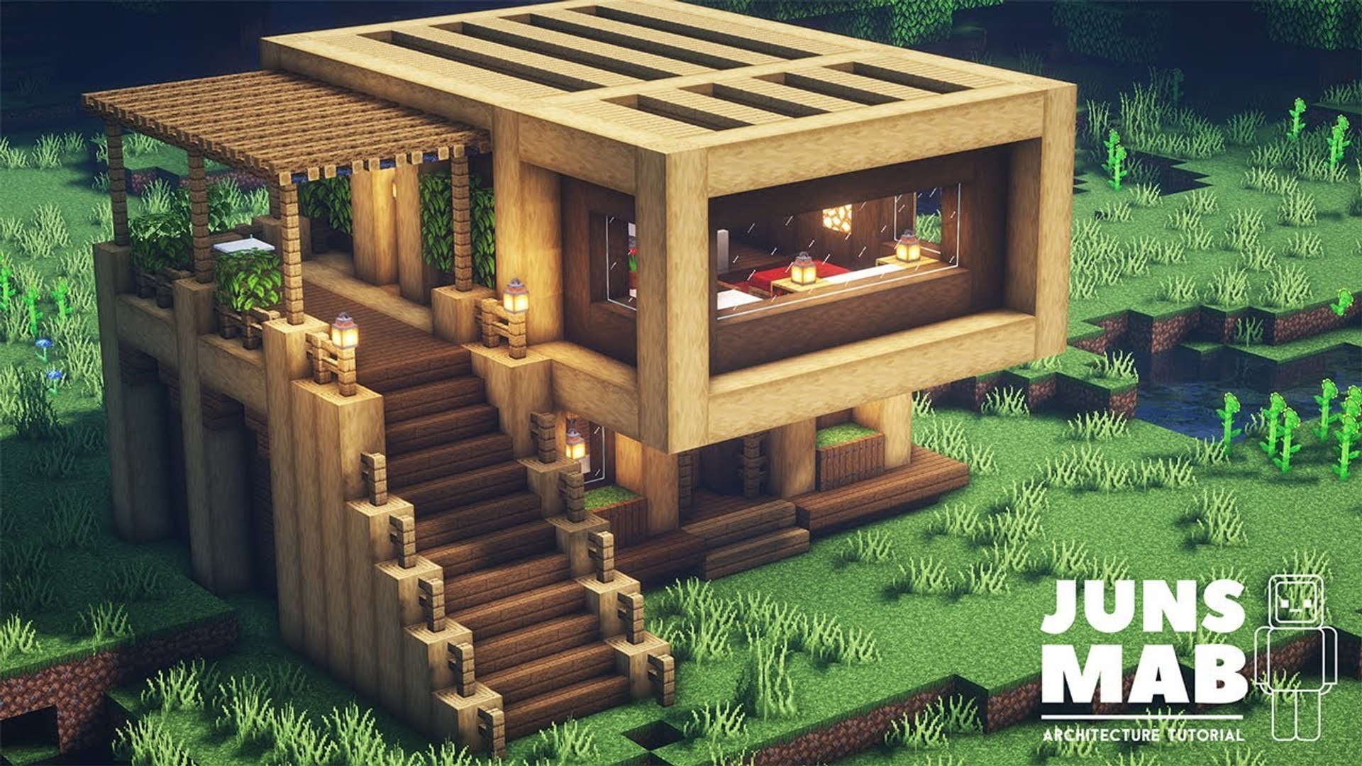 Therefore, it is only natural to make a sand house in the desert where it is hot and airy. Build a large living room with full modern furniture and lots of interior plants and saplings, which can make your living space feel lively and exciting to spend time in. This house itself is warm and cozy with torches in every room. And there is a small space under the stairs. Minecraft | how to build a wooden house.